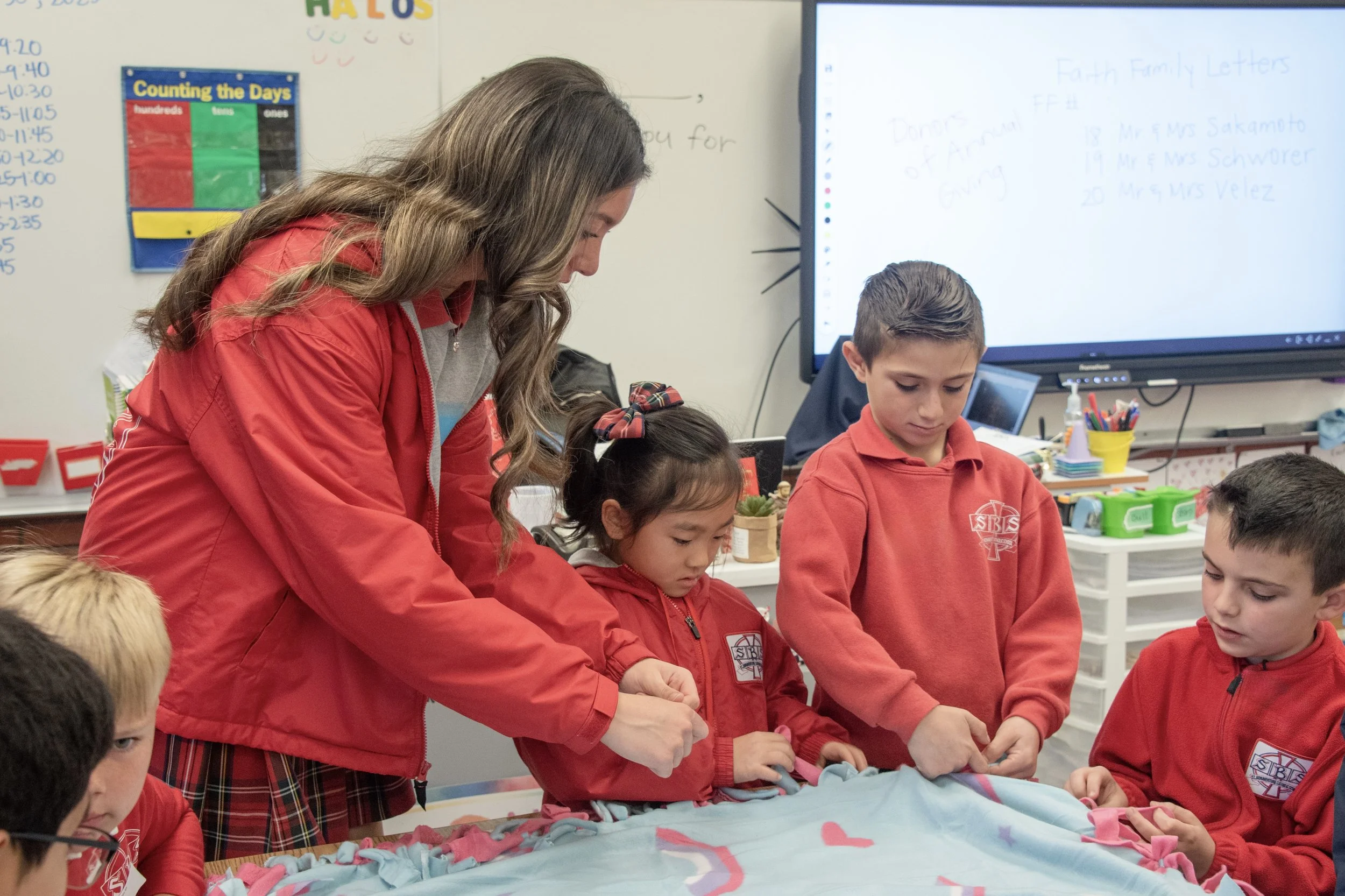Our Faith Families Program is a meaningful way for students to grow in faith, leadership, and belonging. Each Faith Family brings together students from every grade level, with an 8th grader serving as the Head of the Family to guide and support their group. We begin the year with a special meet-and-greet where families build relationships and set shared spiritual goals. Throughout the year, Faith Families gather regularly for Student Body Masses, morning prayer assemblies, and service projects, helping our Saints connect across grade levels while living out their faith together as one school community.